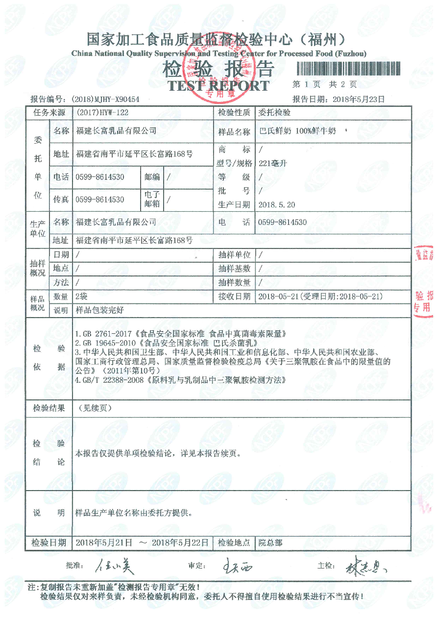 more長富牛奶2018年5月20日質檢所冷鏈檢測報告