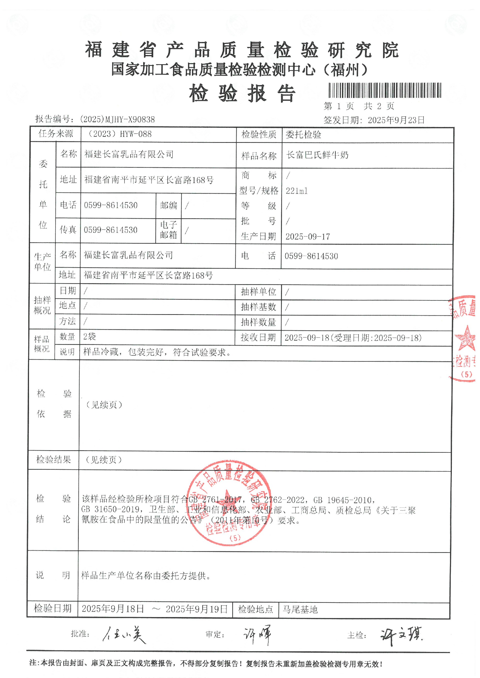 more長富牛奶2025年9月16日省質檢院冷鏈檢測報告